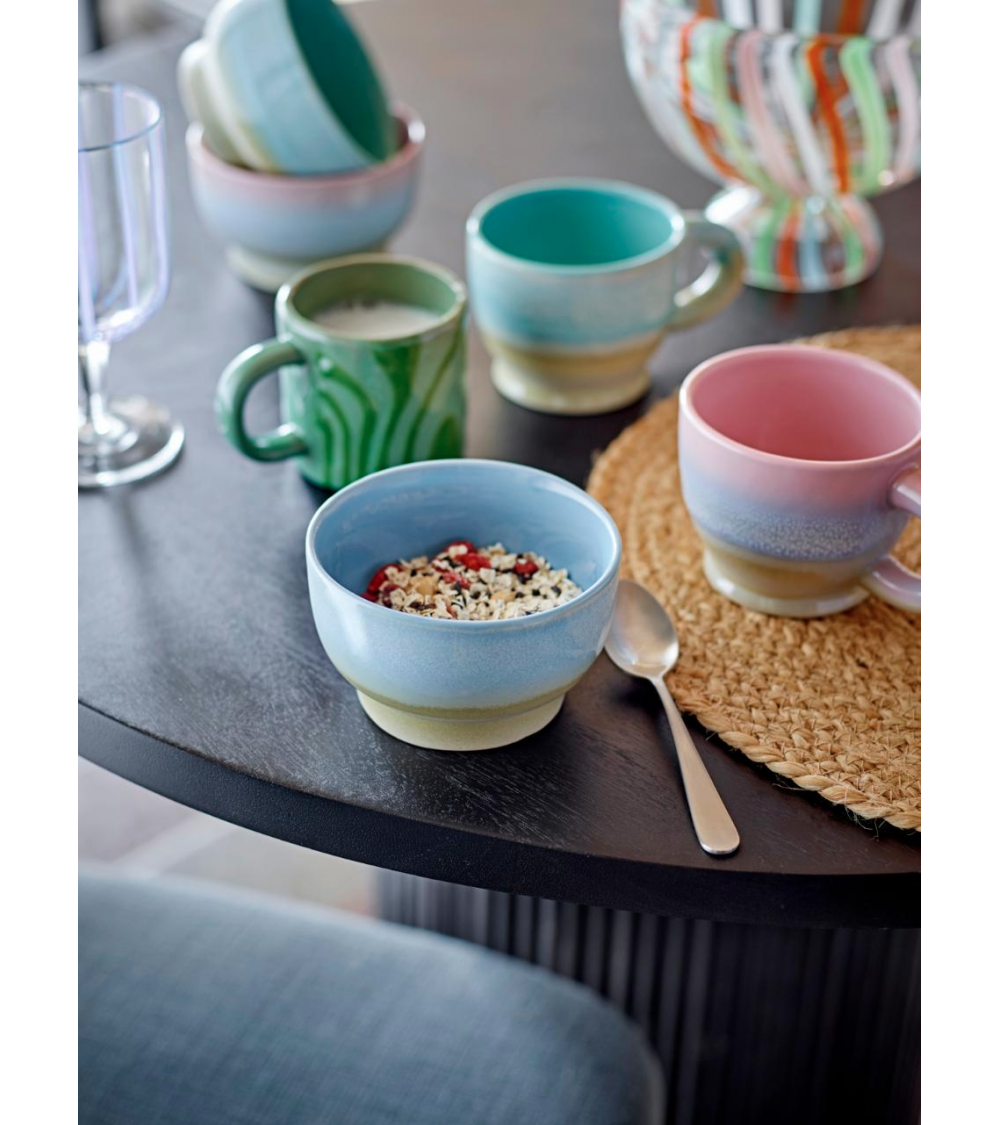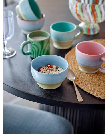 La tasse est colorée avec des vibrations rétro - elle est parfaite pour être mélangée et assortie à d'autres tasses et ajoute une touche amusante et colorée à votre décoration.