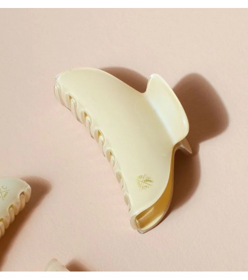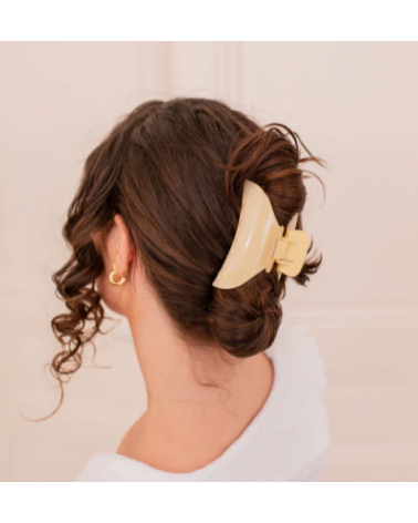 Pince à cheveux pratique et élégante avec une finition opaline et transparente.