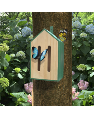 Cette maison confortable comporte deux longues fentes qui permettent aux papillons d'entrer facilement tout en empêchant les oiseaux d'entrer. Accrochez-la n'importe où dans votre jardin ou votre arrière-cour. C'est l'habitat idéal pour les papillons.