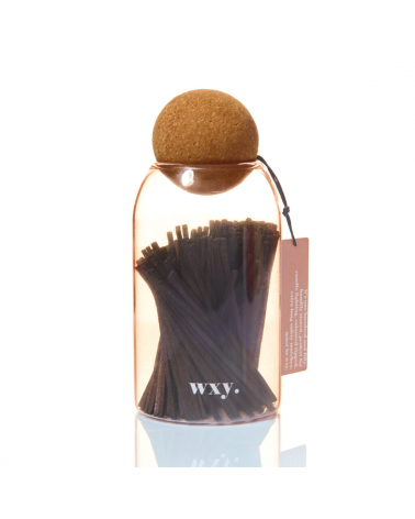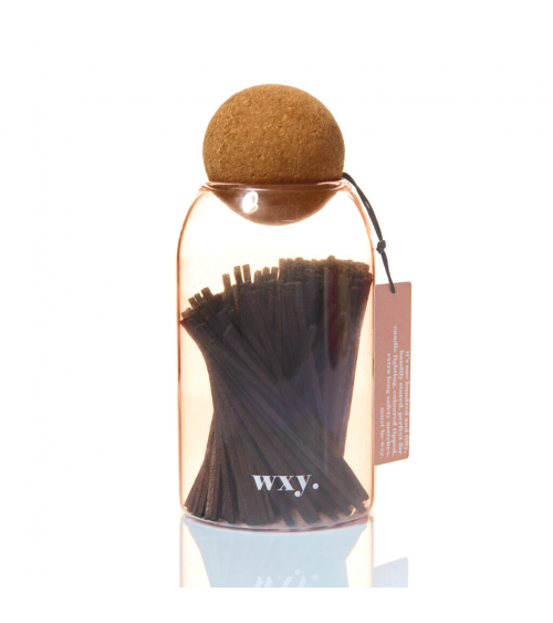 150 allumettes de sécurité dans un bocal en verre teinté réutilisable.