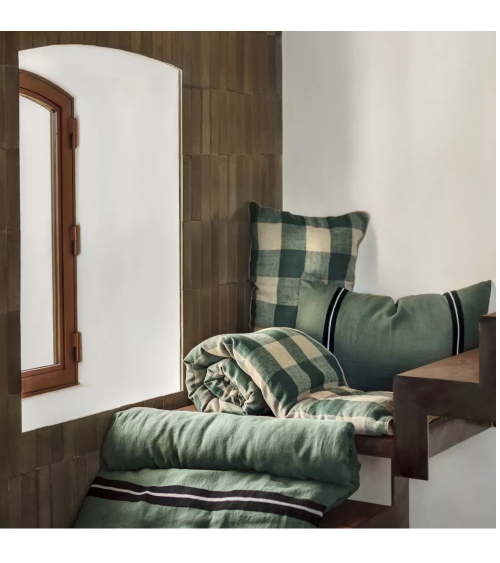 Matière Housse 100% lin lavé tissé teint - Intérieur de coussin 100% polyester.