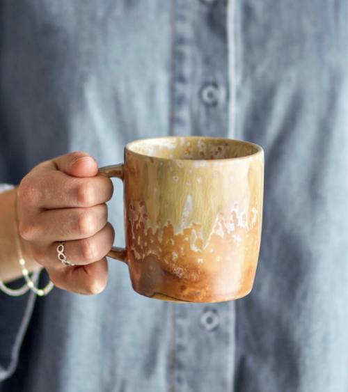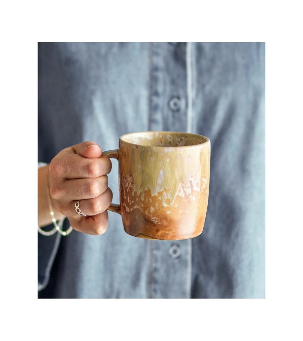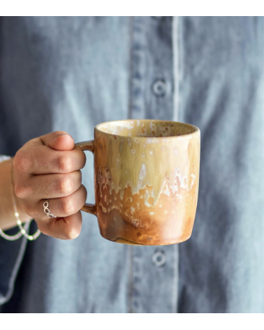 Ce mug est fabriqué en grès avec une glaçure réactive dans des tons clairs et sourds.