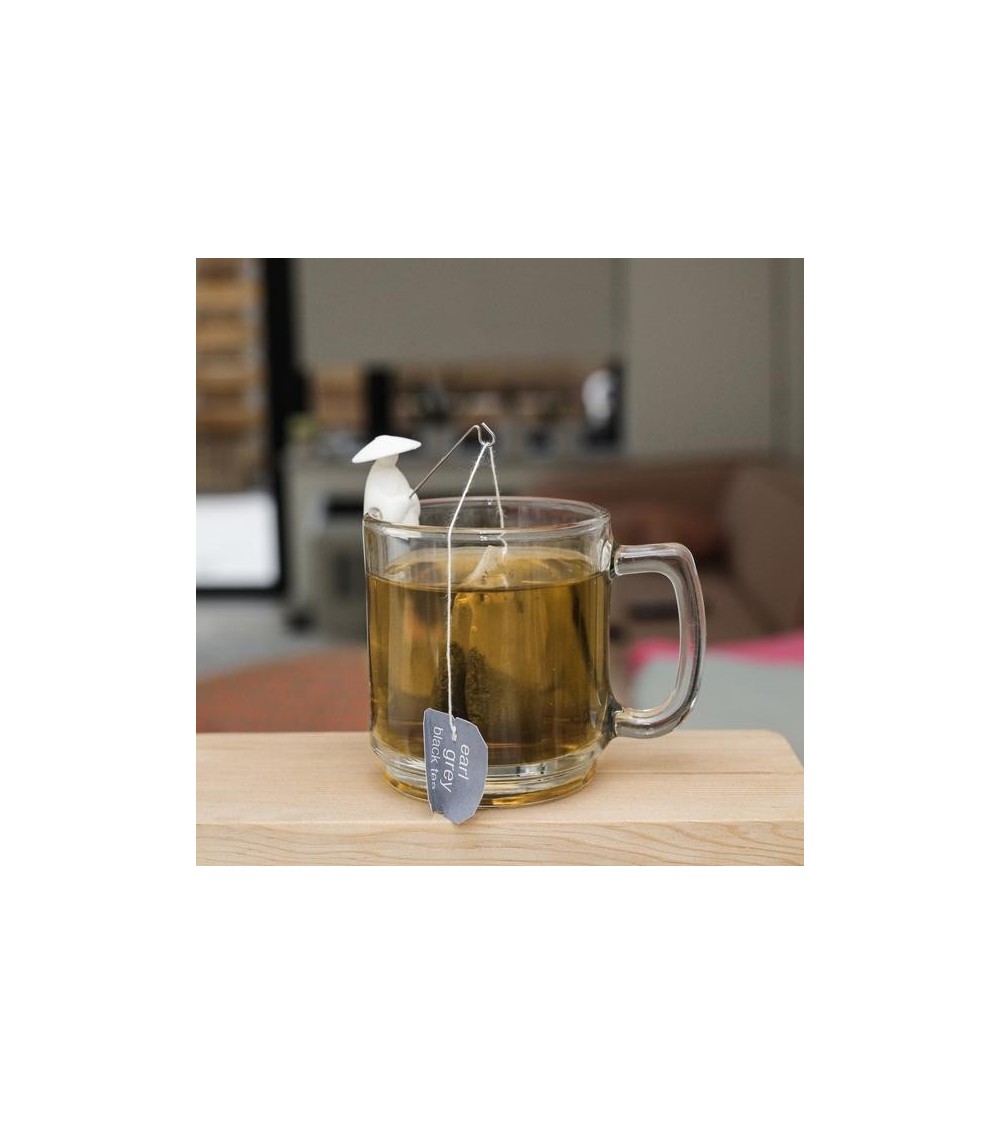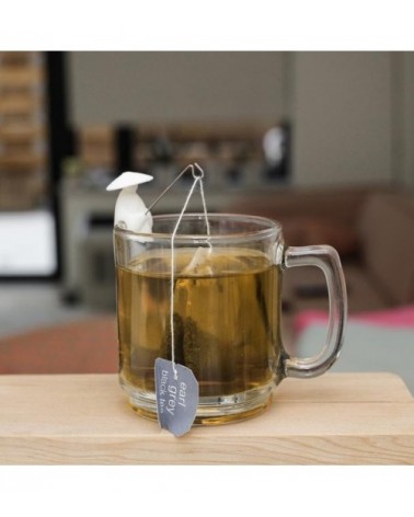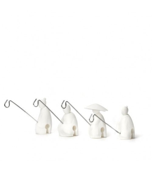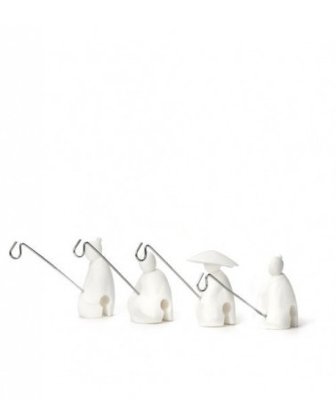 Ces pêcheurs symbolisent une vieille histoire chinoise de Jiang Taïong. Ils utilisaient un hameçon droit parce qu’ils croyaient que le poisson viendrait à lui quand il serait prêt à être capturé. Maintenant, il tient patiemment votre sachet de thé. Designer Wang Lei.