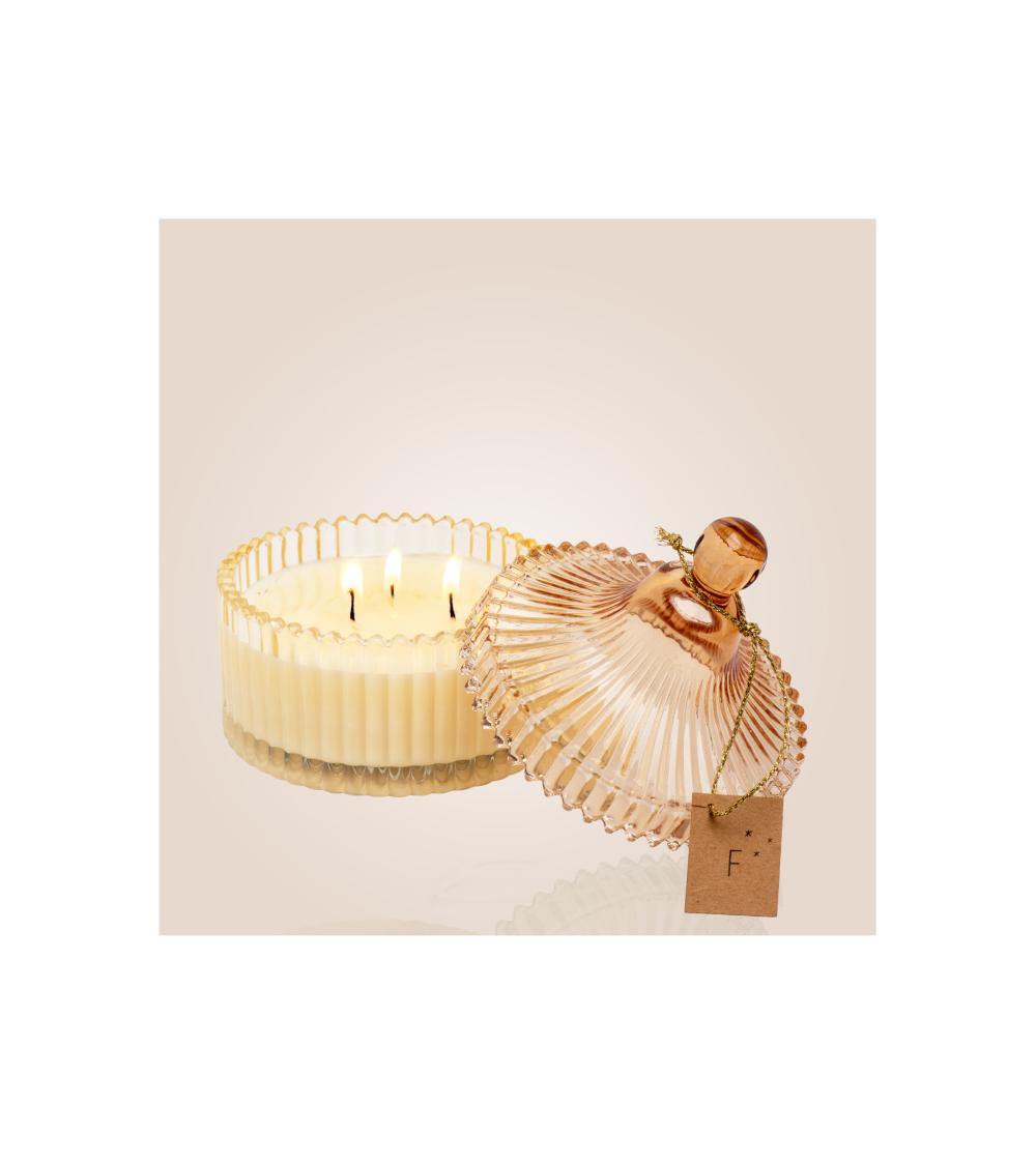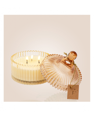Matières Bonbonnière en verre - Mèche pur coton, cire végétale.