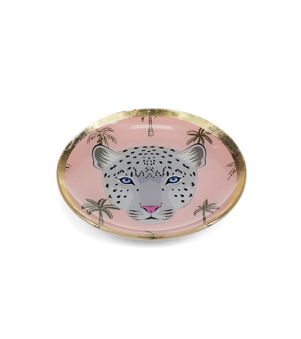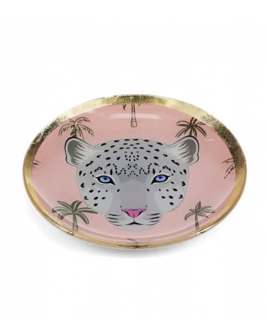 Il présente des détails en papier d'aluminium de couleur or sur le dos et autour, et une tête de léopard magnifiquement illustré au centre, parmi un motif de palmiers. L'accessoire parfait pour la décoration de la maison, qui peut être utilisé pour placer un large éventail de petits articles: bijoux (bagues, boucles d'oreilles, etc.), clés,...