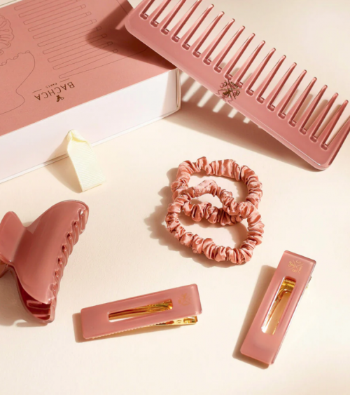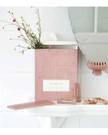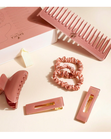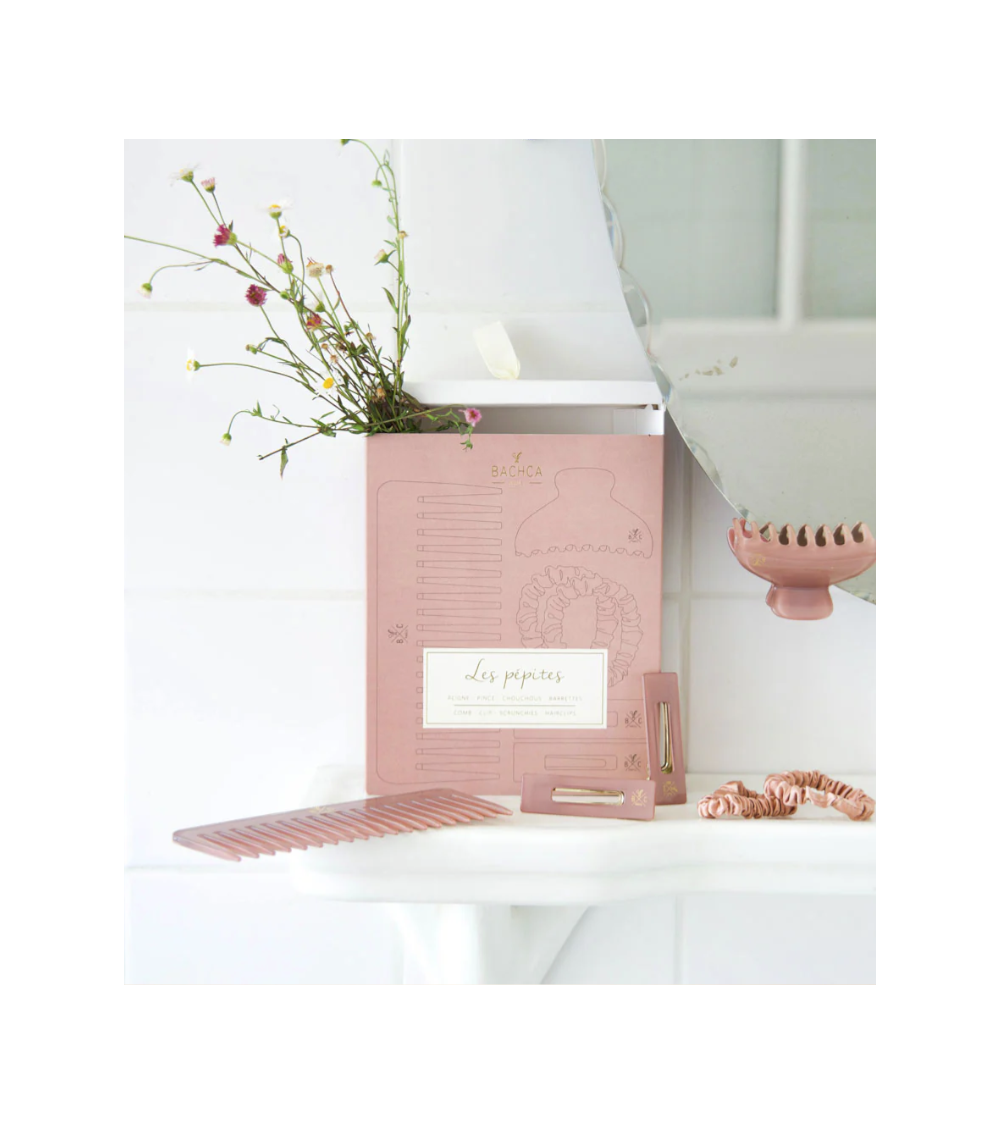 Découvrez l'élégance intemporelle du coffret Les Pépites Bois de Rose, pour sublimer vos cheveux avec style, grâce aux accessoires bois de rose.