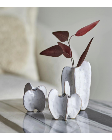 Le Vase Jayce de Bloomingville est un ensemble sculptural de trois vases en grès, chacun doté d’un émaillage réactif qui crée de légères variations de motifs et d’intensité de couleur, rendant chaque pièce unique.