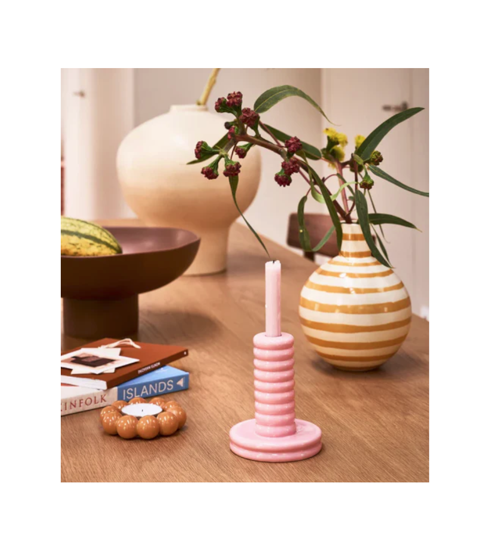 Son corps renflé et son col droit créent une silhouette ludique mais intemporelle, apportant chaleur et personnalité à une table à manger ou une étagère choisie.