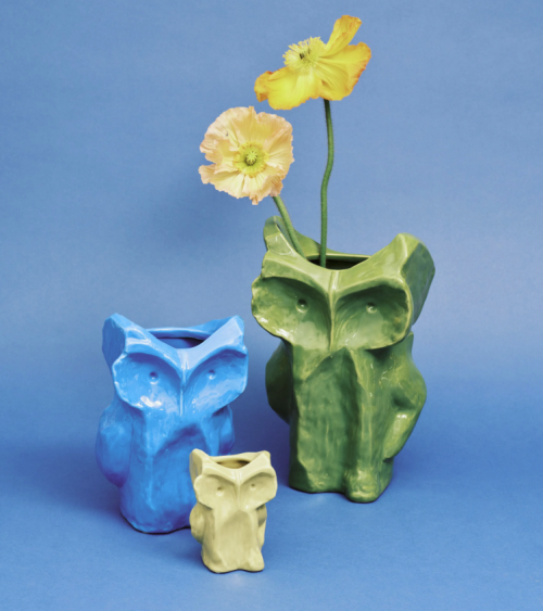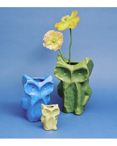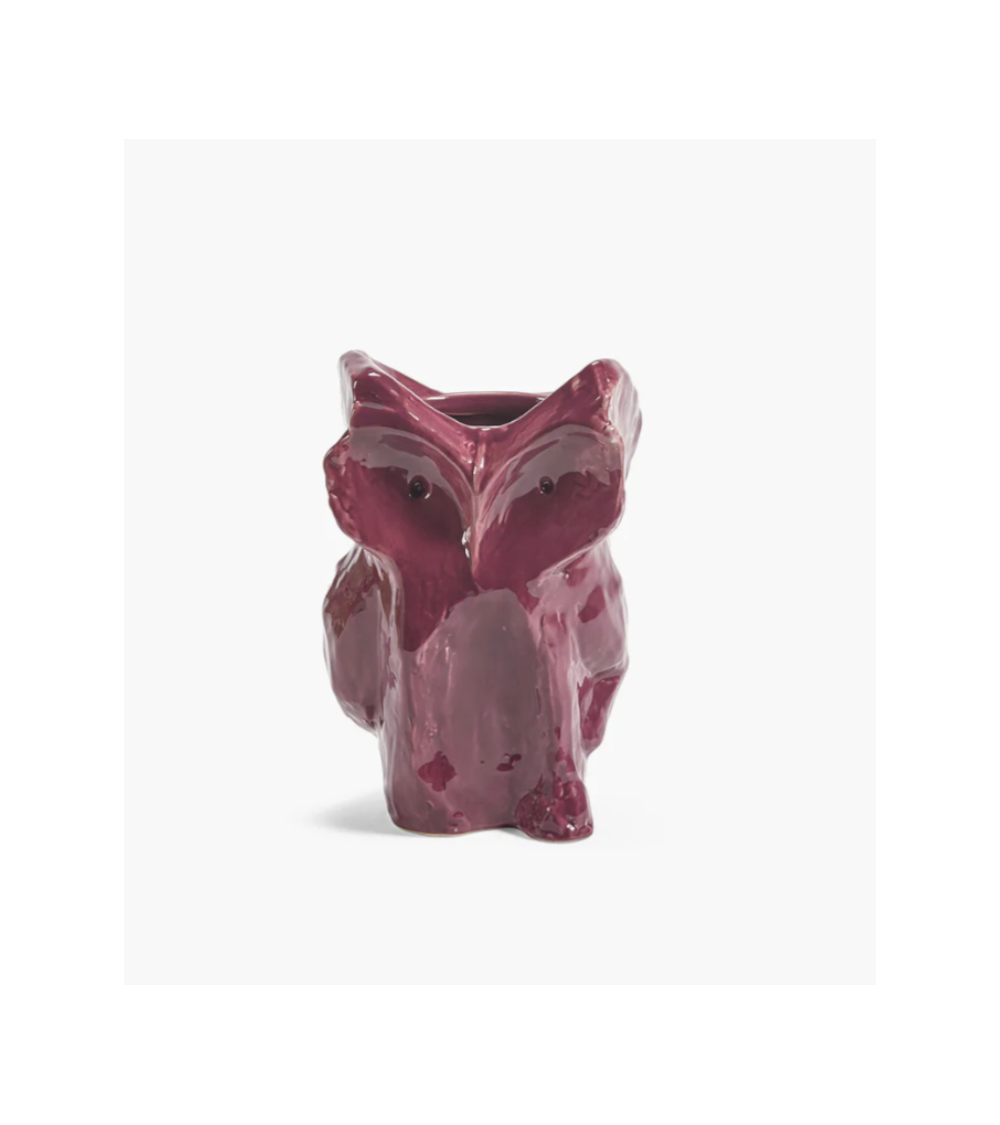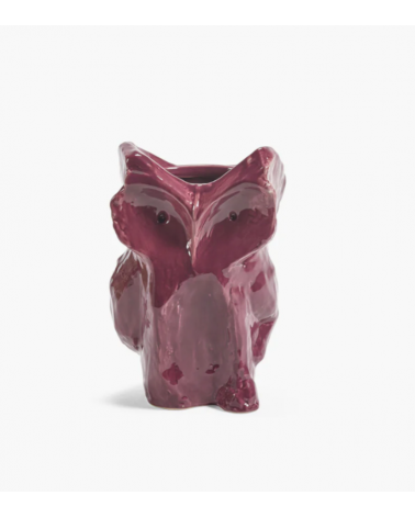 Un petit vase de chouette ajoutant de la couleur et un accent décoratif audacieux à l'intérieur.