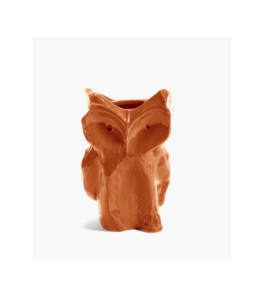 Avec sa forme de chouette sculpturale et sa palette audacieuse, ce vase est une véritable pièce de conversation.