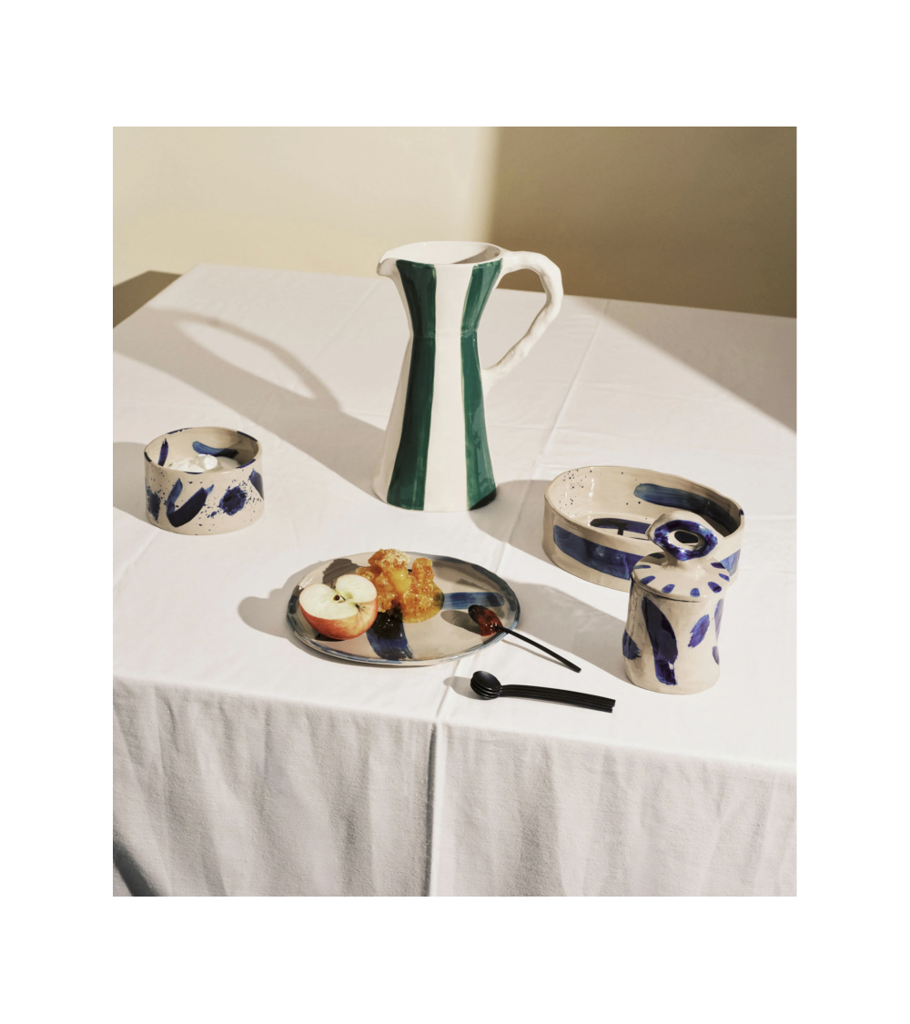 La décoration peinte à la main et les variations naturelles donnent à chaque plaque de service en céramique son propre caractère.