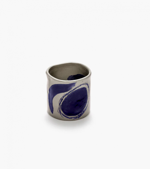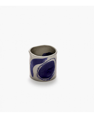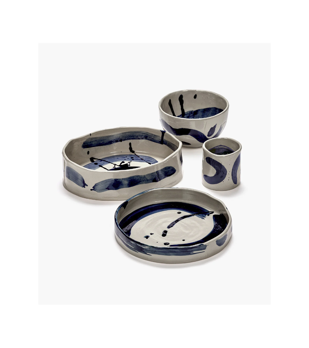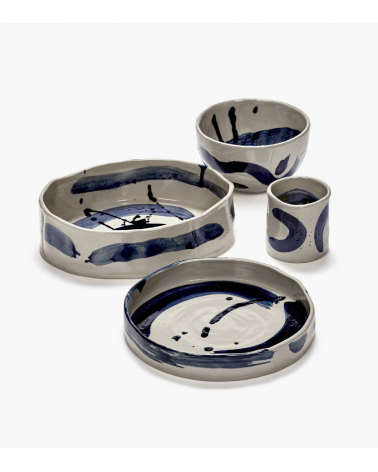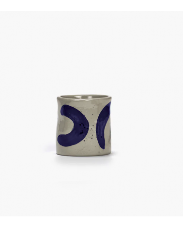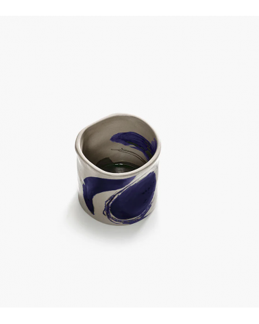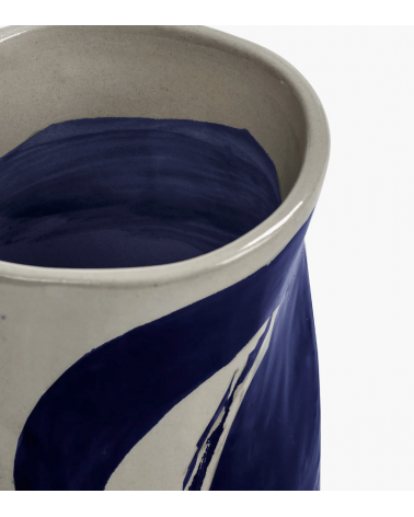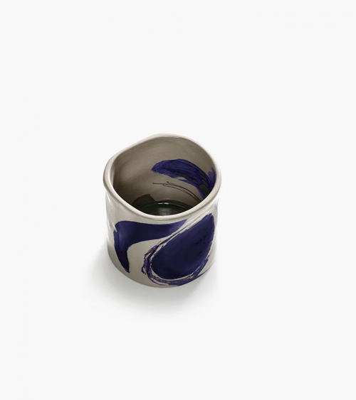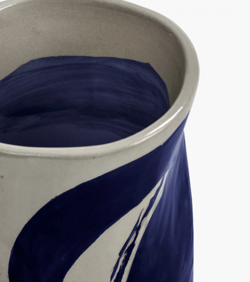 Cette tasse de café en céramique de la collection Sophia présente des coups de pinceau bleu spontanés inspirés de la calligraphie orientale.