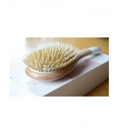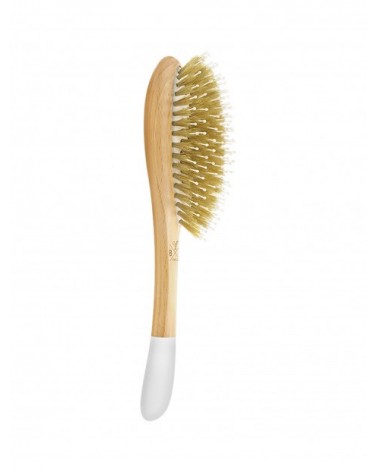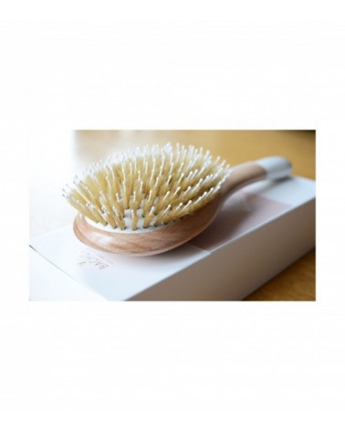 Brosse en bois naturel, idéale pour démêler et lisser en douceur grâce à l'association des picots sanglier et nylon.