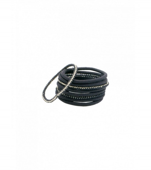 L’incontournable élastique noir agrémenté d’un fil lurex doré est idéal pour les coiffures de tous les jours.
